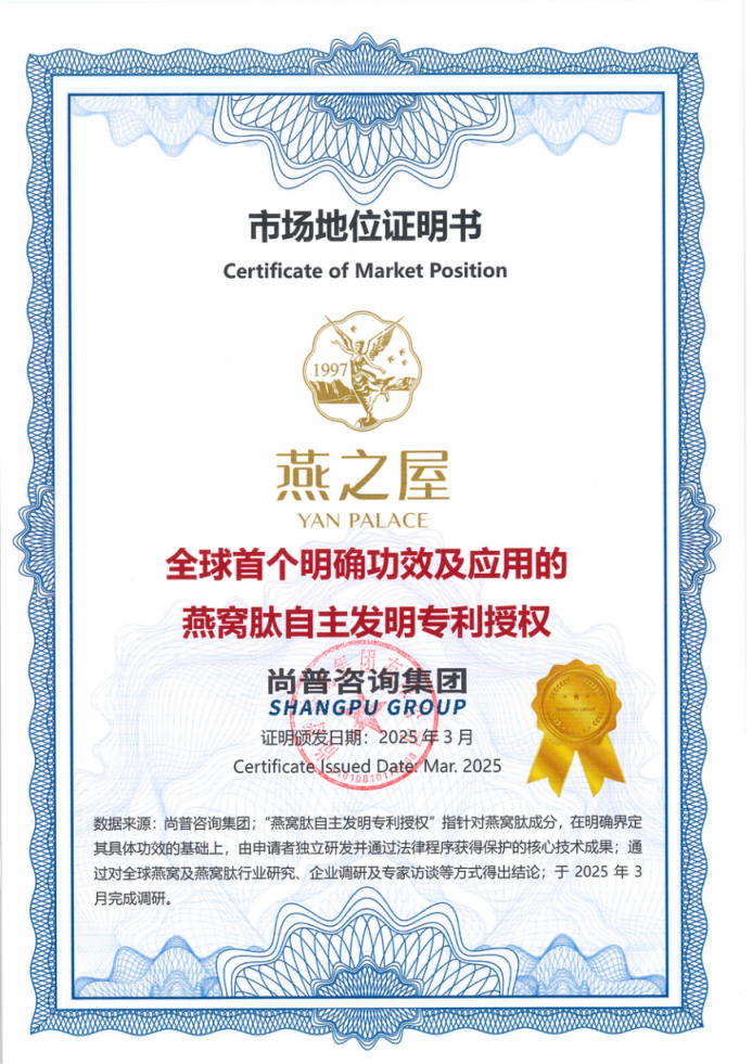 產(chǎn)品的核心成分——燕窩肽的研發(fā),依托于燕之屋扎實(shí)的科研積累。經(jīng)過(guò)數百次測驗,燕之屋科研團隊成功研發(fā)出全球首個(gè)明確功效及應用的燕窩肽自主發(fā)明專(zhuān)利。該專(zhuān)利技術(shù)明確了燕窩肽酶解工藝,并揭示了通過(guò)該工藝制備的燕窩肽具備保濕美白、細胞修復、抗氧化等功能特性。YANPEP燕窩肽革命性采用專(zhuān)利燕窩肽酶解技術(shù),嚴選自北緯黃金帶的優(yōu)質(zhì)燕窩原料,通過(guò)精準生物切割工藝,高效地將燕窩大分子蛋白轉化為小分子活性肽。該技術(shù)不僅充分保留燕窩營(yíng)養精華,更顯著(zhù)提升了其吸收效率。